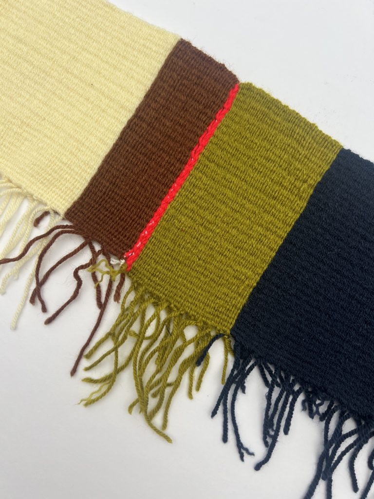 moving forward there are quite a few explorations that i have yet to have the opportunity to fully investigate. time did not allow for me to explore the collective nature of my work on a broader scale – how can i invite specific communities to participate in weaving intersectionality to include more voices and perspectives? this may be through group workshops for traditional craft communities, students, those working in corporate design industry, etc. scale is another aspect that i have been slowly increasing but still has room to grow. due to the ‘soft’ nature of my physical woven pieces, i feel the size needs to be much larger to feel more imposing and have heavier weight and impact. through further making and integrating a participatory / collective aspect to my work, i hope to continue to explore, learn, grow, and add to the ever-evolving tapestry of my work.